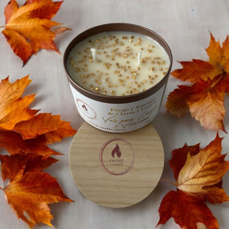 Las velas de clavos y canela son ideales para activar la energía y revitalizar el ambiente. La canela aporta calidez y estimula la motivación, mientras que el clavo refuerza la concentración y equilibra las emociones. Juntas, crean una atmósfera acogedora y vibrante, perfecta para mantener el ánimo elevado y la mente enfocada durante el día.
